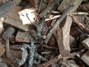 Foto: de uitwerpselen van de jongen liggen buiten het nest.