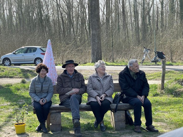 Zondagmiddag 27 maart jl. werd de Savelbergbank aan de Veeweg bij het toekomstige Herdenkingsbos op een gezellige manier ingewijd. Daarbij werden de leden van de familie Savelberg die mede aan de wieg stonden van de Natuurwacht Meerssen – de voorloper van IVN Meerssen – op een ludieke wijze in het zonnetje gezet.