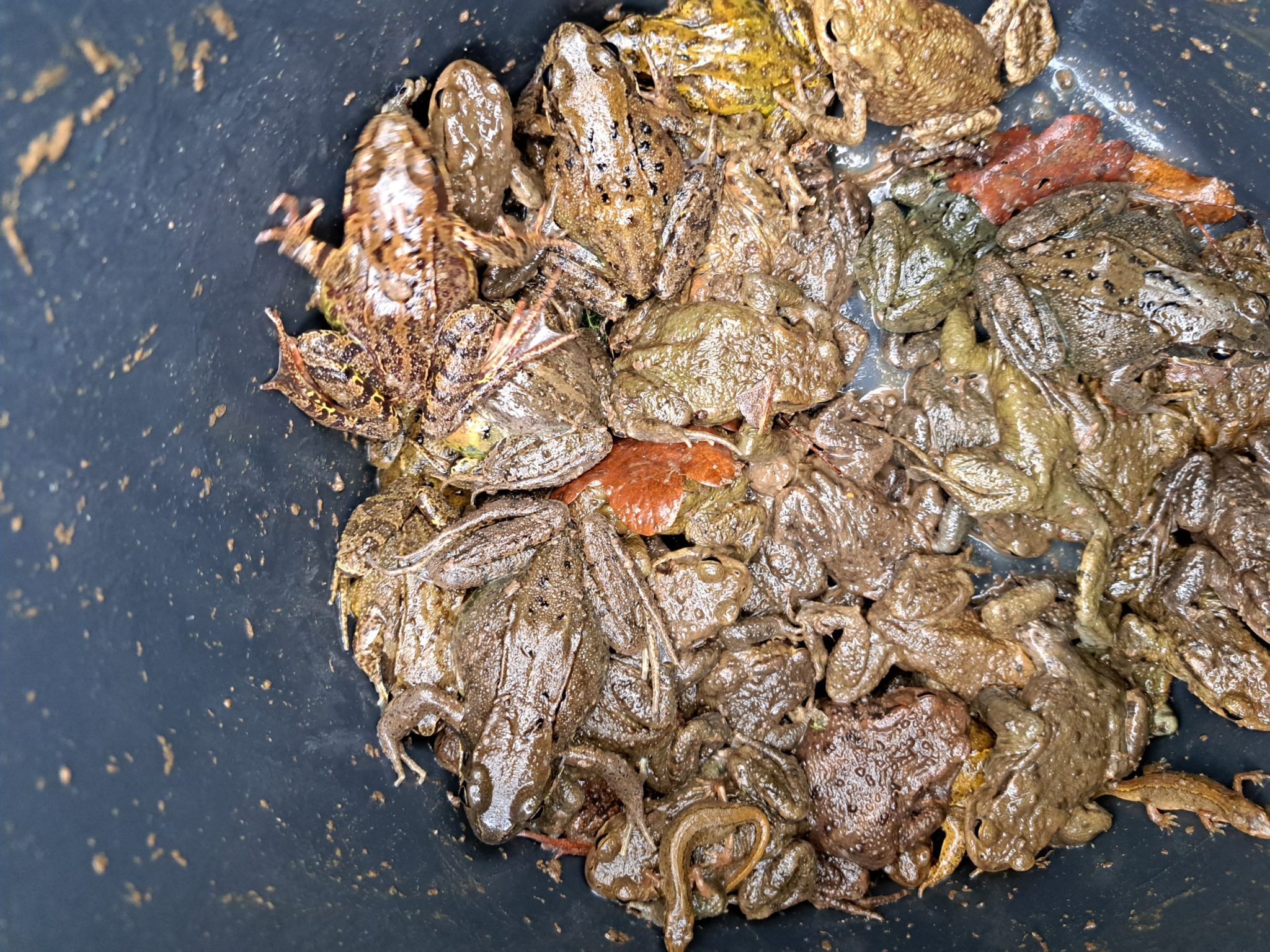 De paddenwerkgroep redt jaarlijks vele honderden amfibieën.