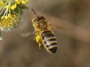 Bij bijen denken de meeste mensen aan de honingbij. Dit is de bij die door mensen in kasten gehouden worden, en waar onze honing vandaan komt. De honingbij is een generalist en bestuift heel veel soorten planten. Omdat ze als volk overwinteren zijn ze er in het hele jaar in grote aantallen aanwezig en kunnen ze veel (geteelde) gewassen bestuiven.