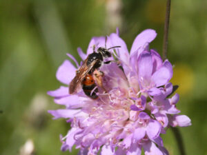Knautiabij op beemdkroon