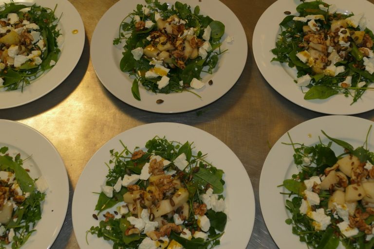 Zo kwam er een leuke anekdote binnen van een deelneemster: “de kastanjes voor de puree, die in een hele hete oven van 190 graden gezet werden, begonnen spontaan te ontploffen zodat de kokers dekking moesten zoeken achter pannen en potten. Het was een hele leuke ervaring dat met zoveel ingrediënten uit de natuur een mooie maaltijd gemaakt kan worden. En het enthousiasme van Sandra werkte erg motiverend in de keuken. Iedereen was erg gedreven aan het werk”.