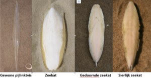 Wie regelmatig langs het strand loopt komt dan vaak de rugschildjes van de zeekat tegen. Veel inktvissoorten hebben inwendig aan de rugzijde een schelp, zoals de uit brosse, witte kalk bestaande rugschilden van zeekatten. Pijlinktvissen hebben in hun lichaam een soort schelp, gladius genoemd. Die is van dun, chitine-achtig materiaal en bevat geen kalk. Van de kleinere soorten zoals de gewone pijlinktvis spoelt regelmatig de gladius en de glibberige, de op dreadlock-kwallen lijkende eierstrengen aan. Deze soort is te vinden langs de Nederlandse kust. Ze bereiken gemiddeld een lengte tussen de 40 tot 60 centimeter.