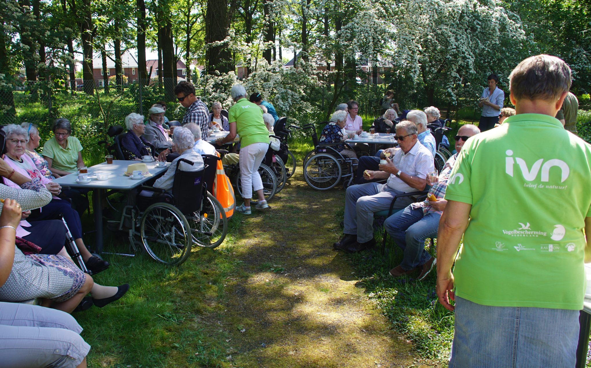 Afgelopen maandag 5 juni hadden we het jaarlijkse bezoek van de wandelgroep van “Klok tot Klok” in de IVN-tuin. Het was stralend weer en rond 14.30 arriveerde de groep, bestaande uit inwoners van Bethanie, rolstoelers en hun begeleiders. Eerst maakten ze een rondje door deze mooie tuin om vervolgens in de schaduw op het terras van een kopje koffie of thee met koek te gebruiken. Na ongeveer een uurtje gerust te hebben vervolgen ze hun tocht.