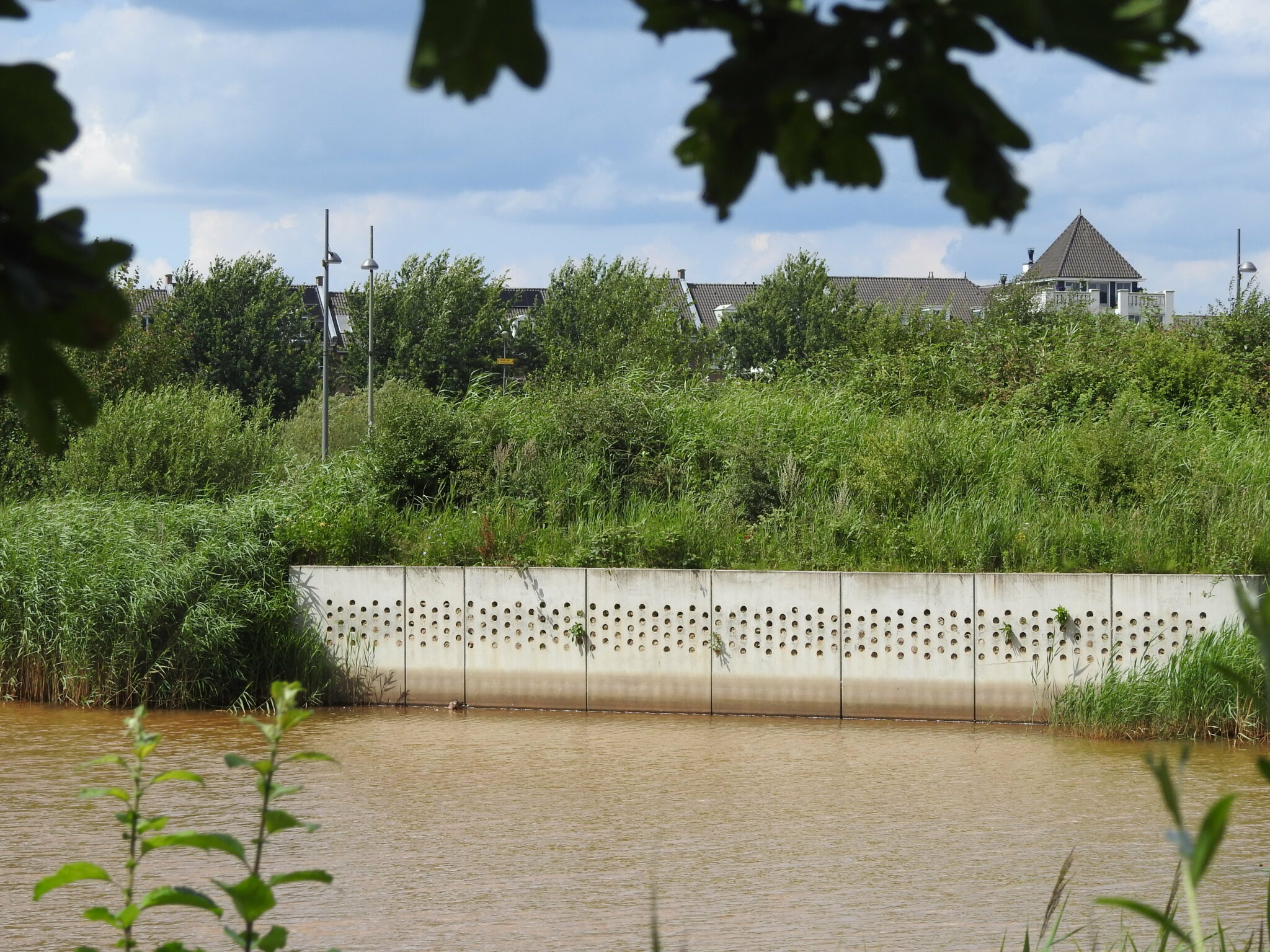 Op 28 juni hebben we het aantal nestgaten geteld. Dit aantal geven we door aan SOVON bij de kolonievogels. Dit jaar waren er 53 nestgaten en één nestgat was door de ijsvogel in gebruik genomen. Tijdens het tellen ging de ijsvogel met een grote vis in zijn bek eerst op de betonwand zitten om vervolgens in het nestgat te verdwijnen. Hij was weer binnen enkele seconden terug zonder de vis. Waarschijnlijk zit het vrouwtje te broeden en heeft hij voor het eten gezorgd (de vis was veel te groot voor jonge vogels). Op 14 juli waren ook de jonge oeverzwaluwen goed te zien.