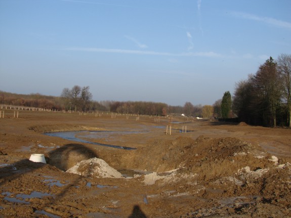 De oostelijke oever achter Abshoven was grotendeels heringericht met de monding van een zijbeek en verschillende poelen waarin je je nu al kunt voorstellen dat het daarin straks krioelt van de amfibieën.