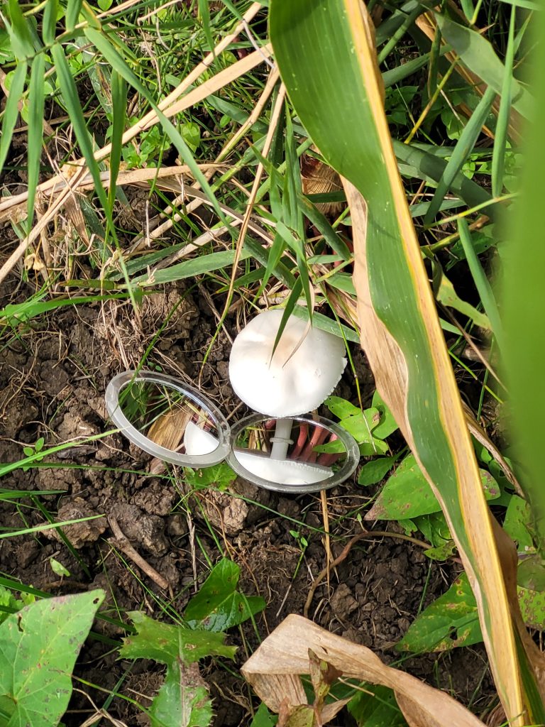 Maar natuurlijk zijn we ook planten, bomen (tamme kastanjes gezocht) en vogels (o.a. torenvalk, ijsvogel en puttertjes) tegengekomen. Gezien een paar natte dagen eerder in die week en de nog best hoge temperaturen hebben we onderweg ook een aantal paddenstoelen kunnen bewonderen, zie foto.