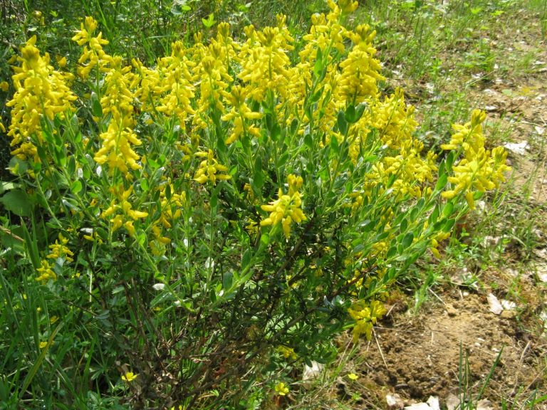 De werkgroep Praktisch Natuurbeheer werkt zaterdagochtend 11 april bij de Heselenberg. In een klein gebiedje aan de bosrand groeit Duitse brem. De leemgrond hier is net voldoende kalkhoudend voor deze zeer zeldzame plant. We starten met het plaatsen van stokken bij de Duitse brem; niet alleen als markering om vertrappen te voorkomen, maar ook om het aantal planten te kunnen tellen. Daarna worden overwoekerende bramen, brandnetels en gras verwijderd zodat de Duitse brem tot volle bloei kan komen.