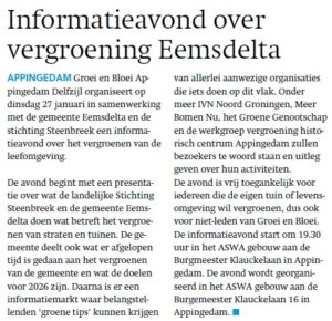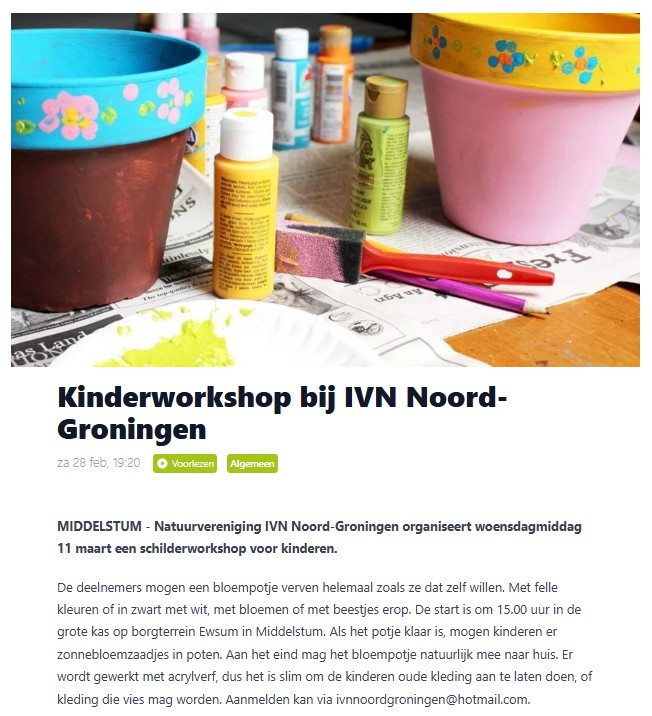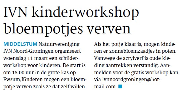 Op deze pagina vind je de artikelen van IVN Noord-Groningen die dit jaar in de lokale pers (kranten en website) hebben gestaan. Dit zijn soms verslagen van activiteiten en van aankondigingen van activiteiten die ook voor niet IVN-leden toegankelijk zijn.