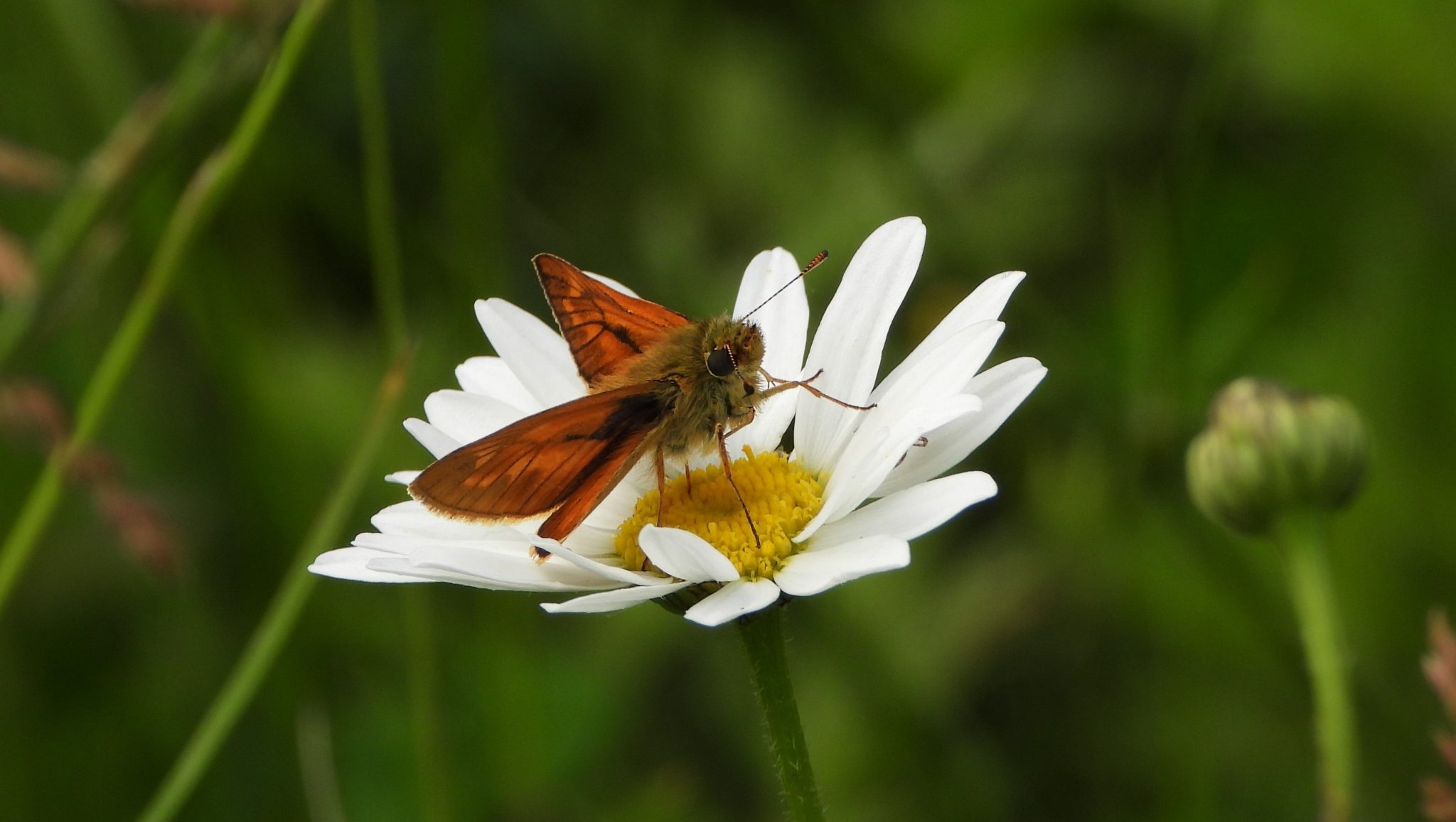 Foto boven het artikel: groot dikkopje op margriet