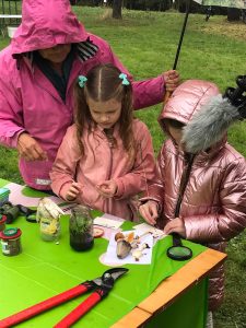 De andere tafel was meer een beleeftafel; er was een vissenkom waar kinderen stekelbaarsjes en waterplantjes van heel dichtbij konden bekijken. En Johanna had inkt mee, gemaakt van vergane inktzwammen, waar kinderen mee konden schrijven. Ook konden kinderen met loepjes paddenstoelen, die Arie Beemsterboer had geplukt, onderzoeken.
