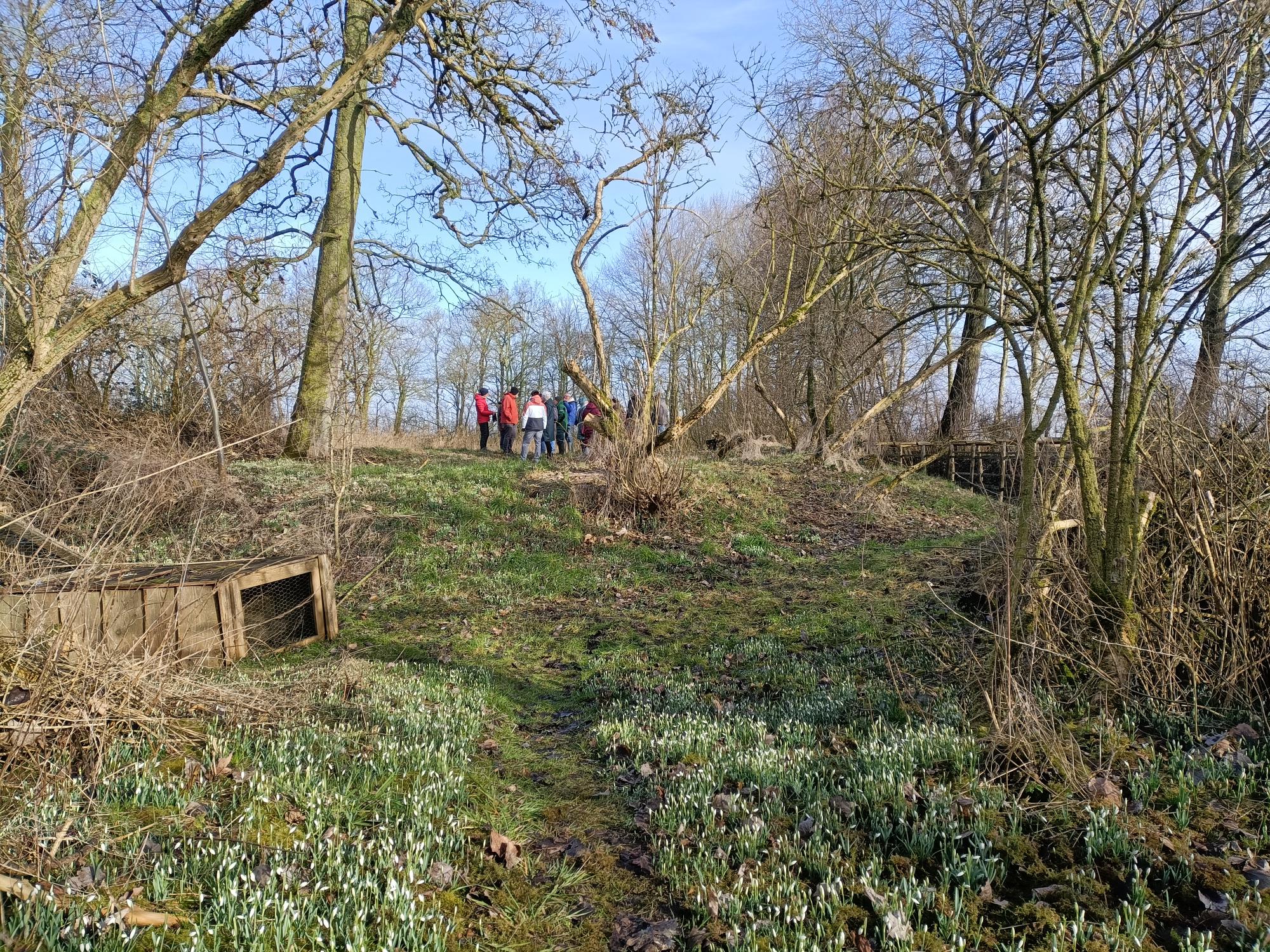 Daarnaast was er aandacht voor de (oud) paddenstoelen en bomen die in de kooi staan. Uiteraard werd ook genoten van de sneeuwklokjes die, door het koude weer van afgelopen tijd, nog niet in volle bloei stonden. Over een week of twee week zullen de sneeuwklokjes waarschijnlijk op hun mooist zijn (afhankelijk van de temperatuur de komende tijd), dus bezoek tegen die tijd nogmaals de kooi was het advies aan het einde.