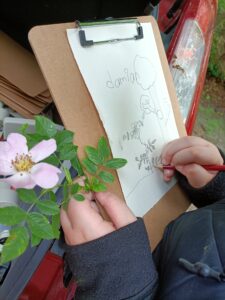 Leerlingen leerden o.a. dat rozen later rozenbottels worden, ze leerden op een veilig manier brandnetels aan te raken, ze roken aan de wortels van nagelkruid en aten bloemblaadjes van de hondsroos. Vervolgens mochten de kinderen hun creativiteit de vrije loop laten tijdens het tekenen en drukken van natuurkunst.