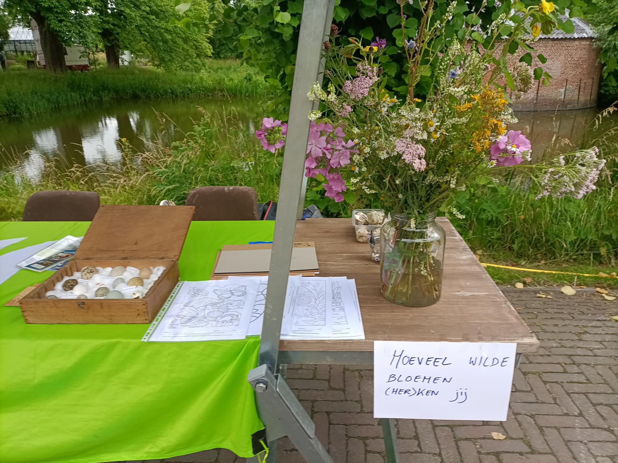 Bezoekers konden schelpen en andere strandvondsten bij onze stand bekijken, evenals vogeleieren en braakballen van ransuilen. Er stond een groot boeket wilde bloemen waar mensen hun wilde plantenkennis konden testen. Gert van der Brink kon bij de meeste planten nog wat meer vertellen.