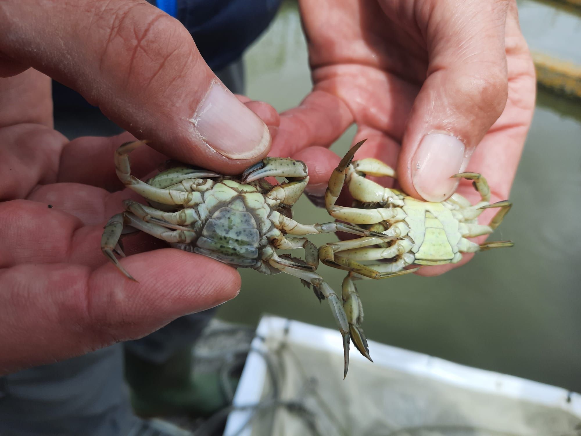 Oscar de Jong gaf in het Zielhoes een presentatie over de migratie van de glasaal, om vervolgens een demonstratie van het vissen in de haven te geven. Er werden nu veel krabbetjes gevangen en kon Oscar mooi laten zien hoe je het verschil tussen een mannetje en een vrouwtjeskrab kan zien (foto onder).