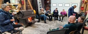 Johanna had ervoor gezorgd dat we in een schuur naast het werkperceel heerlijk droog konden zitten en ons aan de brandende kachel konden opwarmen. Hotel restaurant Ekamper uit Oosteinde had heerlijk warme soep voor de noeste werkers, waarvoor heel erg dank!