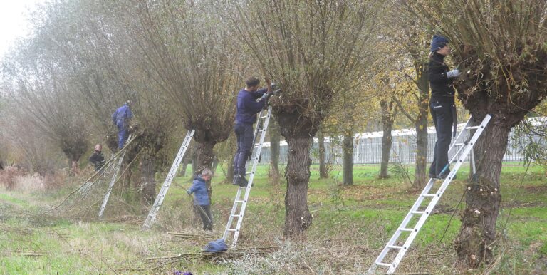 Uithuizermeeden – Helaas waren de weergoden ons dit jaar niet gunstig gezind tijdens de Landelijke Natuurwerkdag. De negen aanwezige IVN-leden hebben twee uur bomen kunnen knotten en takken kunnen slepen aan de Uithuizerweg, toen het dusdanig nat werd dat we gestopt zijn. Toch zijn verschillende wilgen weer ontdaan van hun 2 jarige takken. Er is een mooi begin gemaakt. In februari 2026 gaan we op hetzelfde perceel verder.