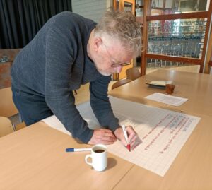 De penningmeester (Auko Bleker foto rechts) en secretaris (Hilde van Heuveln) hebben de theorielessen van het traject Expeditie Nieuwe Gezichten afgerond. Afgelopen zaterdag was de slotbijeenkomst in Drachten waar alle deelnemende afdelingen uit Friesland, Groningen en Drenthe aanwezig waren. De expeditie bestond uit twee fysieke bijeenkomsten in Drachten, 3 online bijeenkomsten en een spel dat door een groep leden gespeeld moest worden.