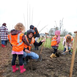 Alle leerlingen van beide basisscholen hebben geholpen bij het planten van 600 bomen. Zij kwamen steeds in groepjes langs en kregen uitleg hoe ze het boompje moesten planten zodat deze de beste kans heeft om te overleven. Er zijn 25 verschillende boomsoorten geplant, o.a. ribes, kornoelje en vlier. Boomsoorten die van nature in Groningen voorkomen.