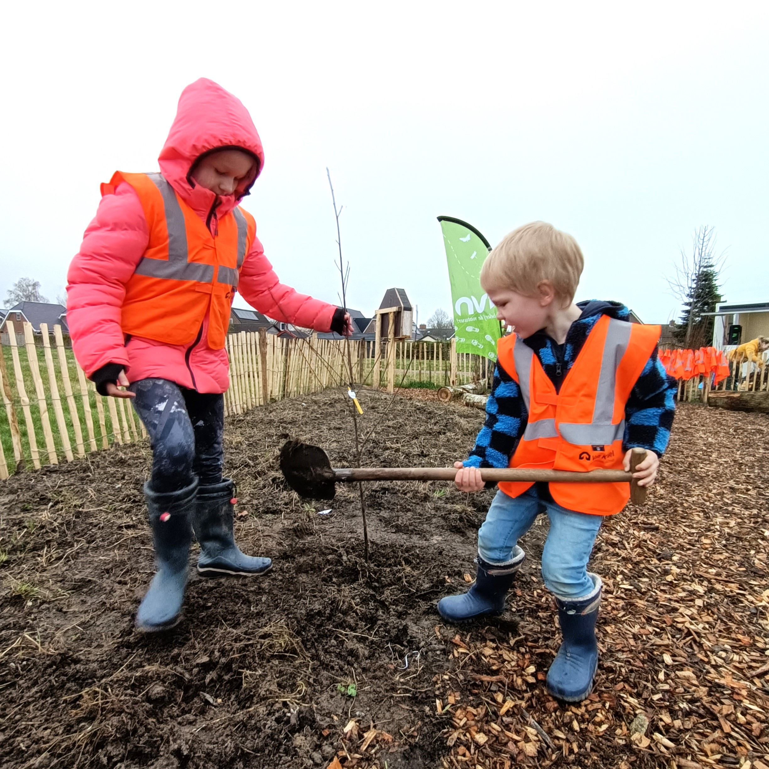 Donderdag 4 april plantten leerlingen van CBS de Noordkaap en NBS de Sterren in Uithuizermeeden hun eigen Tiny Forest, onder leiding van Kees Siderius van IVN Regio Noord.