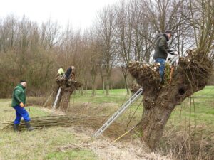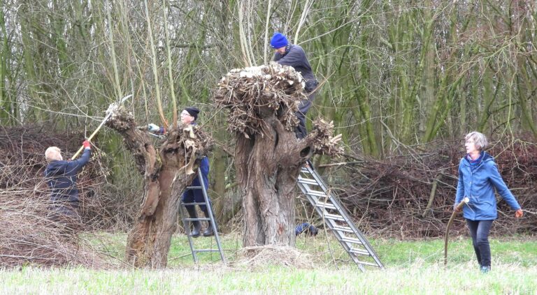Veel vrijwilligers op werkdag wilgen knotten