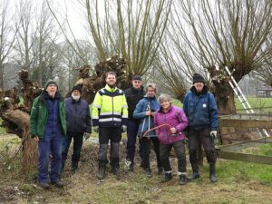 Met veel inzet en enthousiasme heeft een groep van acht vrijwilligers afgelopen zaterdag 8 februari jl. weer wilgen geknot. Dit keer op het perceel van Bernard Sleumer, die jarig was, bij ‘t Lage van de Weg. De deelnemers werden ontvangen door dochter Luëlle met thee en koffie alvorens aan de slag te gaan.