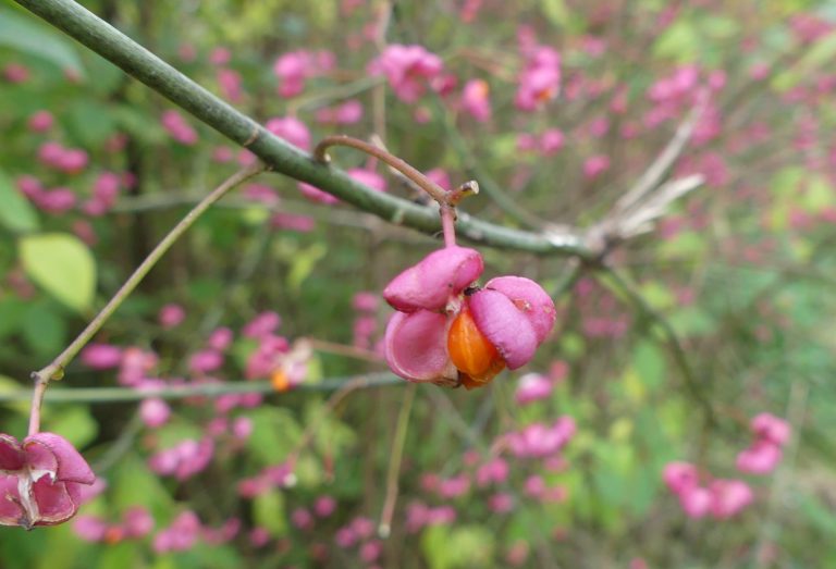 Op dit moment vind ik de kardinaalsmuts met zijn kenmerkende roze-oranje vruchtjes het mooist. En ja, we vinden ook de witte kluifzwammen maar ze zijn alweer een stuk minder fotogeniek; zo gaat dat vaak met paddenstoelen. Op een bankje drinken we onze meegebrachte koffie. Ieder op een punt gezeten kunnen we net de 1,5 meter afstand bewaren, nou ja, misschien is het 1,3 meter.