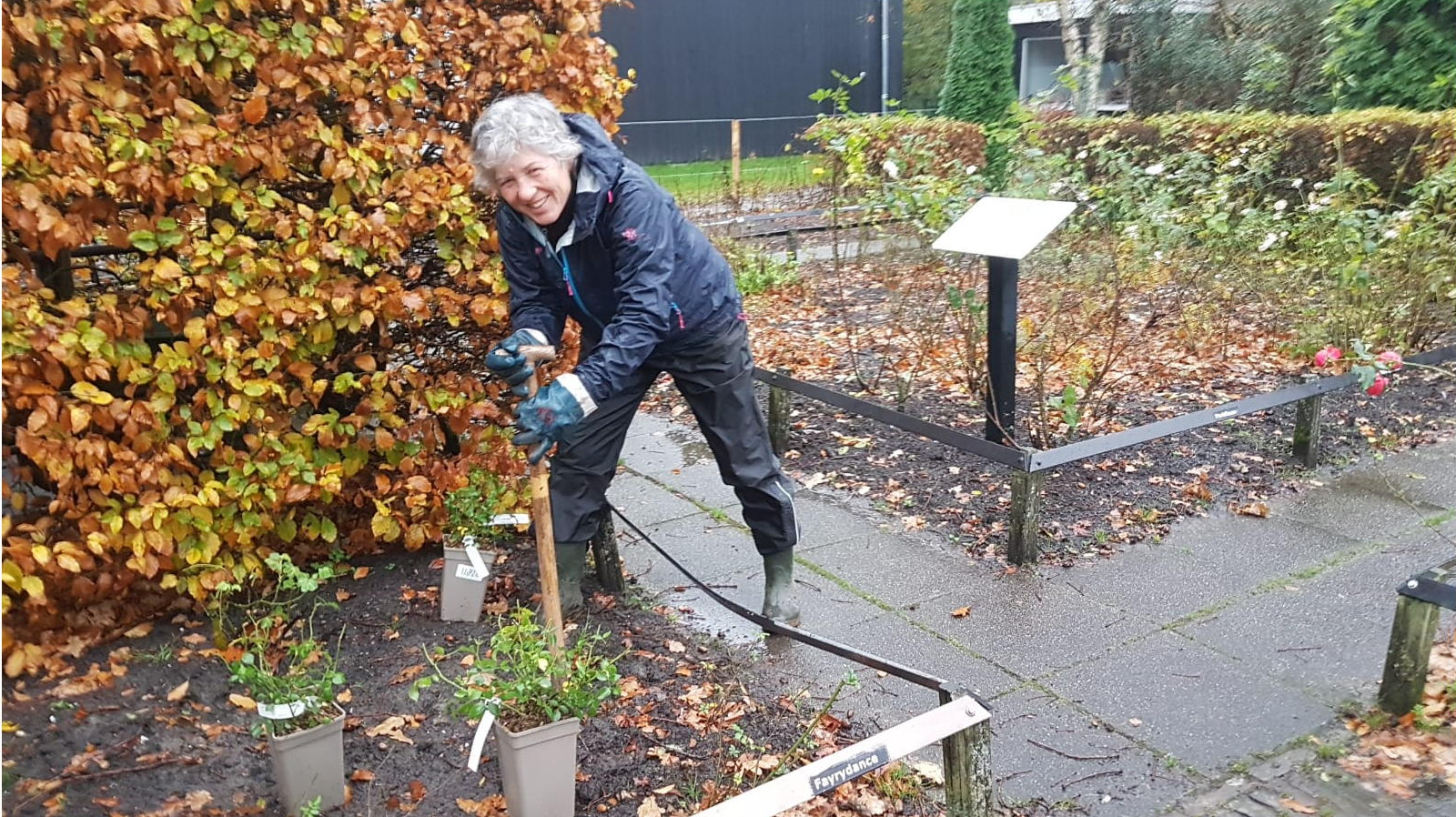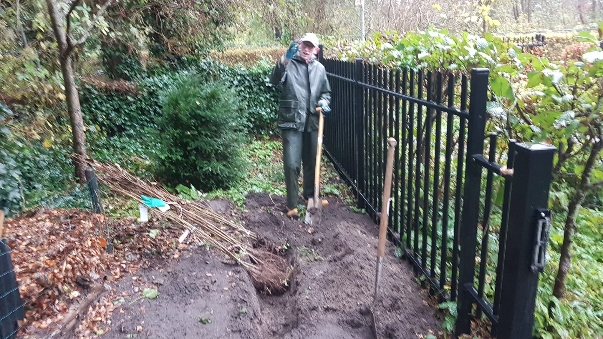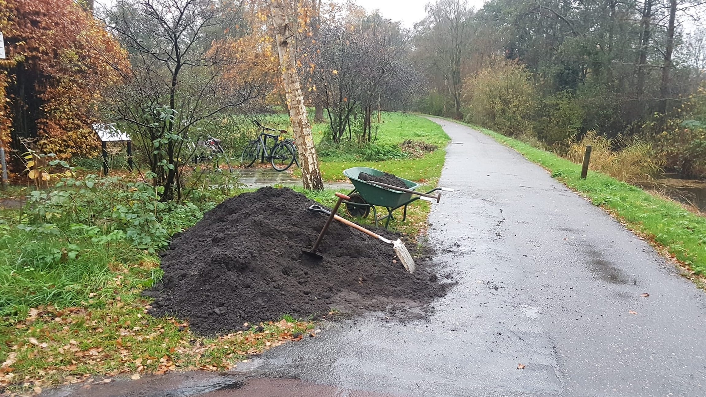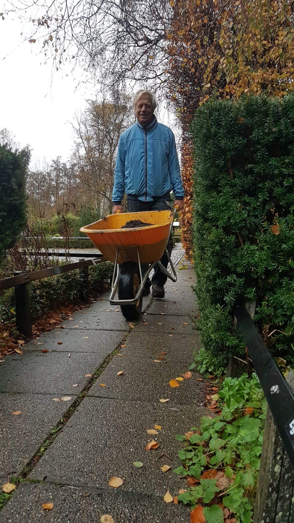Dit was de oproep van Klaas-Jan op 14 november om mee te helpen met het opkuilen van planten en om het afgeleverde grond en zand met kruiwagens naar onze opslag te kruien.