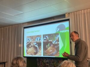 Op deze dinsdagavond 28 oktober 2025 is de zaal weer goed gevuld met ongeveer vijftig toehoorders als Gerard Berendsen om half acht zijn verhaal over de dassen – de Latijnse naam is Meles Meles – begint. De titel van zijn voordracht is: Dassen, lust of last? Na een introductie door Alie Arfman, vertelt Gerard eerst iets over zichzelf. Hij is afkomstig uit Lonneker in Twente en studeerde biologie in Nijmegen. In 2000 heeft hij de Vereniging Das en Boom opgericht en richtte hij eveneens de Dassenwerkgroep Twente op, waar hij jarenlang de voorzitter van was.
