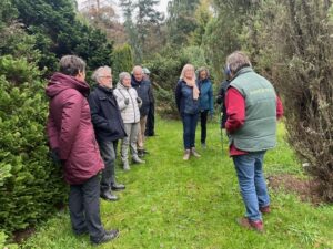 Een koude wind waait wanneer wij ons met zo’n 25 deelnemers op zondagmiddag 14 december 2025 rond twee uur verzamelen bij de kruising Galgengoorweg en Vordensebinnenweg bij Vorden. In de aankondiging staat: “Op de grens van Vorden en Lochem ligt het unieke landgoed de Belten, lees Bulten. Een van die Bulten is het hoogste punt van Vorden. Op een andere belt ligt het Pinetum met zijn verzameling van 950 verschillende soorten coniferen uit de hele wereld”.