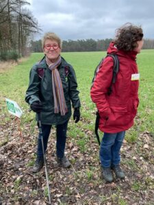 Na een fijne pauze, vervolgen we ons pad en komen uit bij een zogenaamd Vredesbosje: In de tijd van de Kruisraketten, 1981, zijn hier kerstbomen neergezet voor de Vrede, nu meer nodig dan ooit.