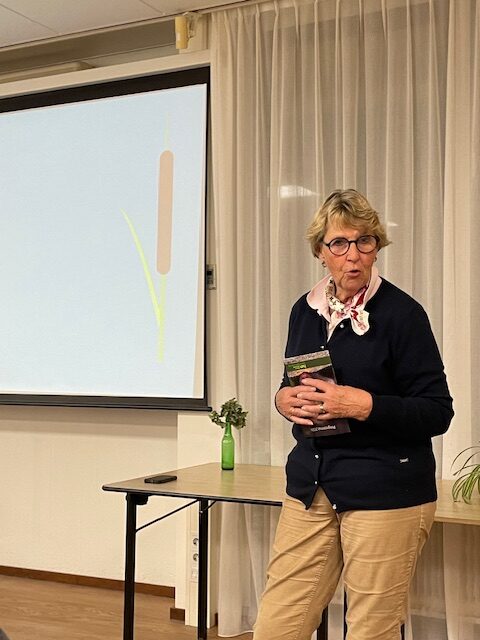 Na de pauze vertelt Anita Krijgsman, penningmeester van IVNNMA dat het thema voor 2025 zal zijn: Landschap en bodem. Ook zijn er dankzij een schenking diverse boeken over paddenstoelen te koop.