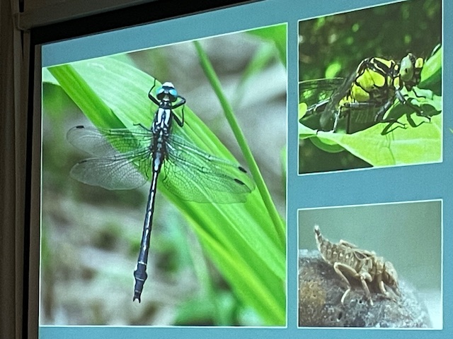 Gelukkig eindigen we deze weer zeer informatieve avond met een aantal opbeurende plaatjes van de beekprik, de modderkruiper, de bosbeekjuffrouw en de kiezelsnelwants. Ook volgt nog de tip om in de vijver hout te leggen, dat trekt de kokerjuffrouw aan en om er boompjes omheen te zetten.