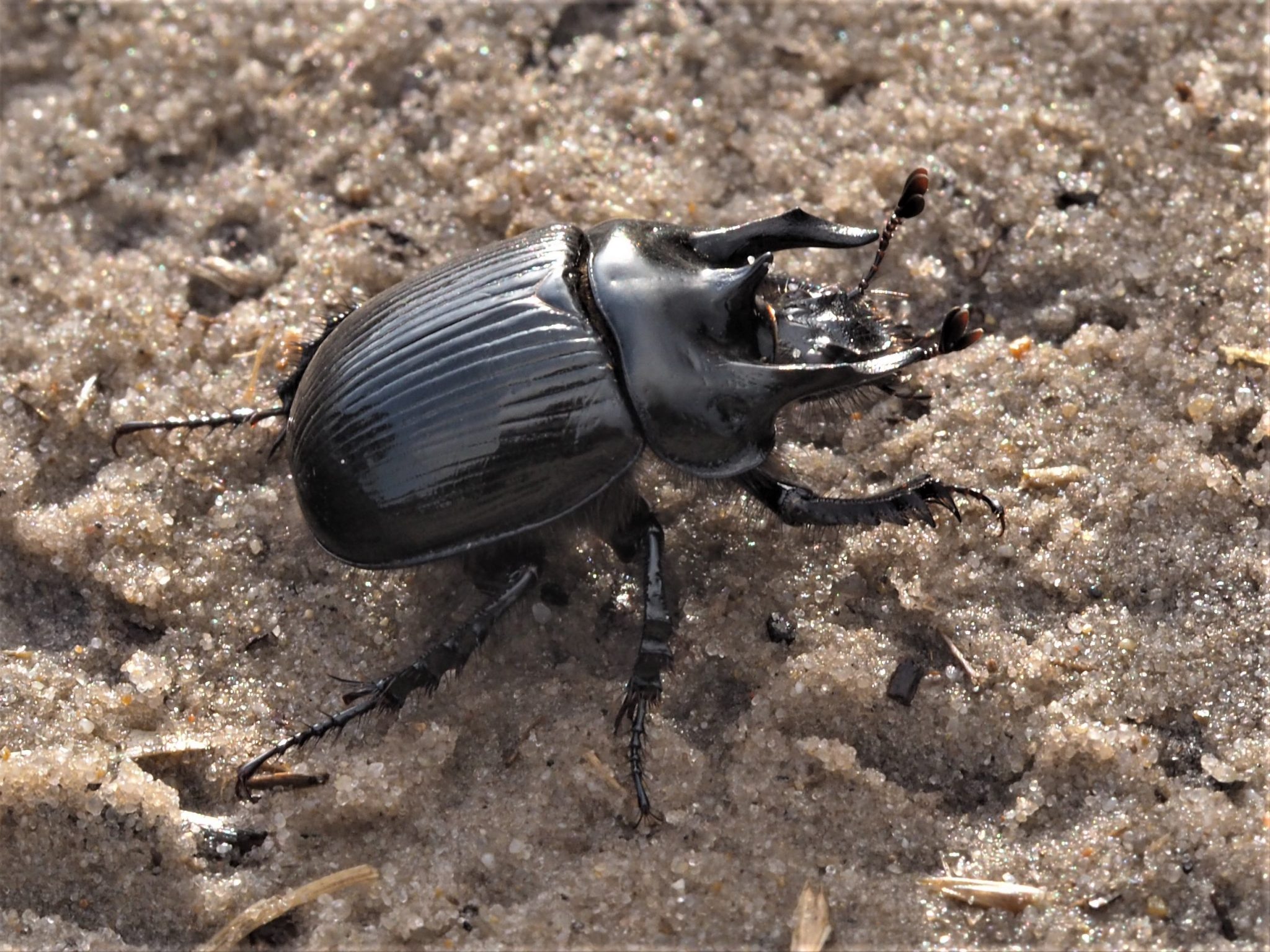 Een veel voorkomend insect hier is de driehoornmestkever, vooral te zien in het vroege voorjaar en de herfst. Hij is een belangrijke en gemakkelijke prooi voor de klapekster. Bij warm weer zijn misschien ook al grijze zandbijen actief.