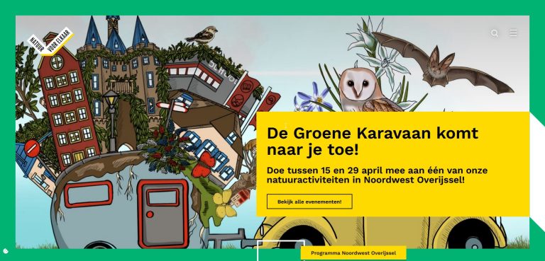 Op zaterdag 15 april start de Groene Karavaan in Noordwest-Overijssel. Inwoners van Steenwijkerland, Zwolle, Zwartewaterland, Staphorst en Kampen kunnen genieten van talrijke groene activiteiten in hun omgeving. Het complete programma tref je op deze website aan.