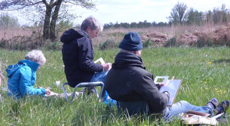 Bepakt met schetsboek, potlood, aquarelverf, water en klapstoeltje gingen de deelnemers op pad door het mooie gebied rondom Steenwijk. Van waterrijke gebieden via bosgebieden naar rietvelden, alle biotopen in de omgeving werden aangedaan. De natuur als onderwerp van je schets. Ruim anderhalf uur lang kijken en schetsen.