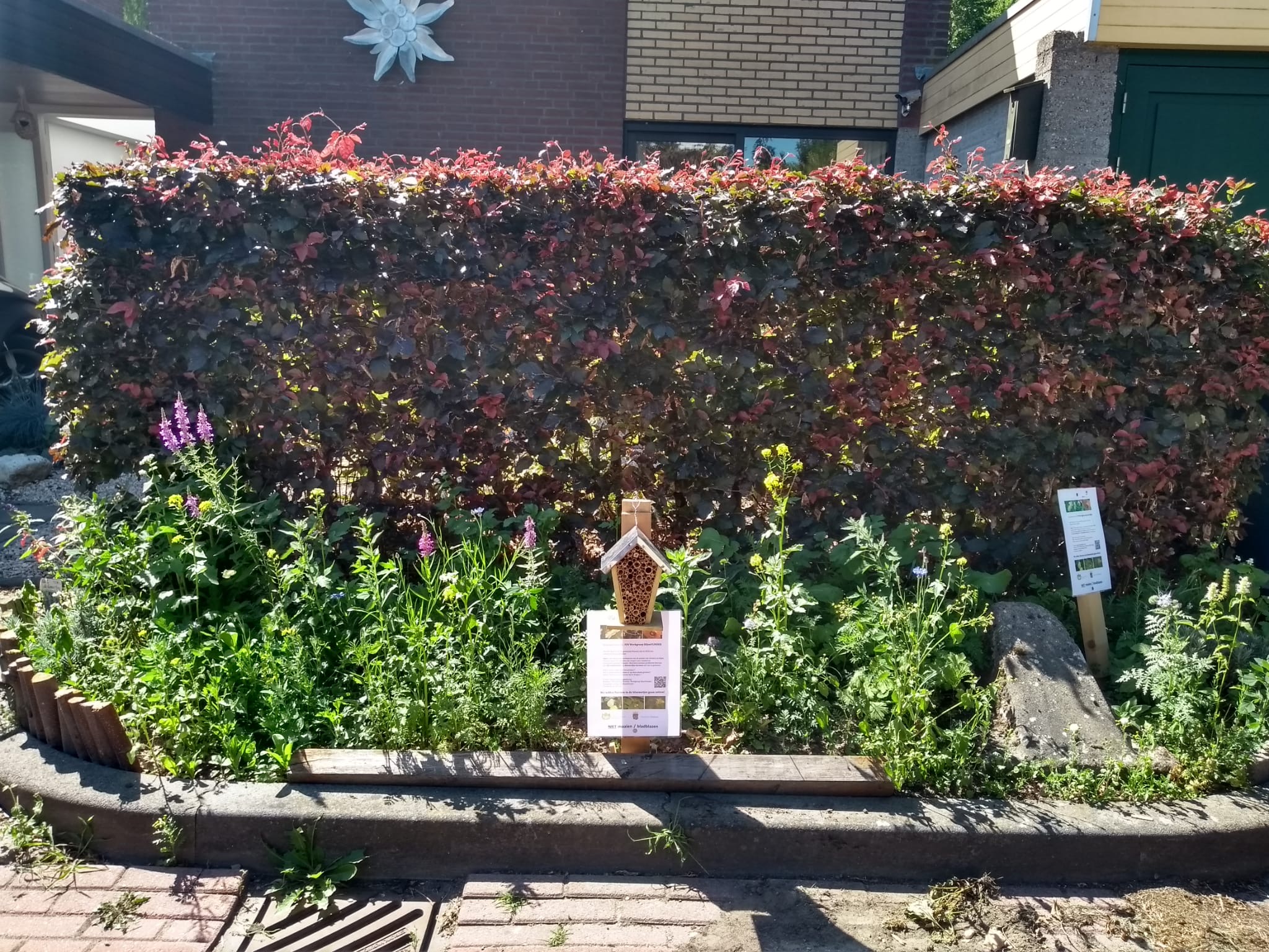 En gewoon in uw eigen tuin kunt u een belangrijke bijdrage leveren: vervang eens wat tegels door vrolijke bloemen waar bijen voedsel uit kunnen halen. En plaats een bijenhotel zodat er ook nestgelegenheid is.