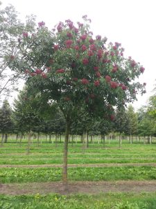 De boom bloeit in juni met brede pluimen geurende witte bloemen die veel nectar leveren en dus flink bevlogen worden door bijen.