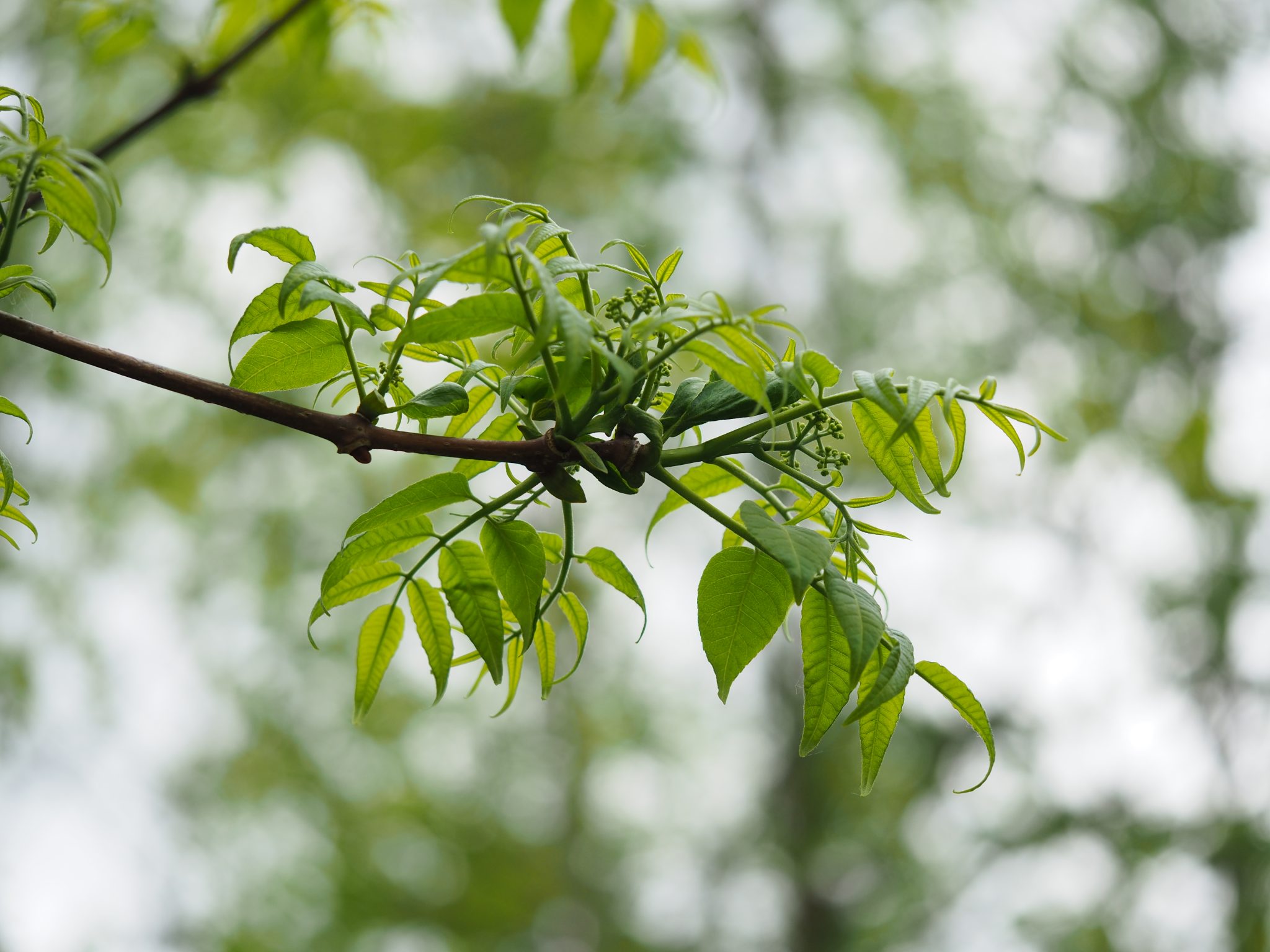 Het glimmend groene, oneven geveerde blad is opgebouwd uit 7 – 11 lang eironde tot ovale deelblaadjes met een spitse bladtop. Bij wrijving verspreidt het blad een aromatische geur.