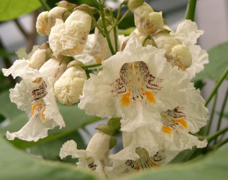 De Trompetboom uit het zuiden van de VS groeit uit tot zo’n 15 meter met een breed spreidende, ronde kroon die wel tien meter breed kan worden. De boom heeft een korte stam met een lage vertakking. Het is een snelle groeier.