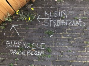 We gaan samen met leden van de plantengroep botanisch krijten, dat wil zeggen dat we op zoek gaan naar stoepplantjes in het dorp en daar krijten we hun naam bij. Op deze manier hopen we positieve aandacht te krijgen voor de diverse planten die er staan en die vaak ‘onkruid’ genoemd worden. Wij noemen het gewoon kruiden of stoepplantjes. Er zijn zoveel verschillende! Door goed naar ze te gaan kijken en hun naam op te zoeken leer je ze zeker ook beter kennen en wellicht beter waarderen. Neem eventueel deze zoekkaart mee.