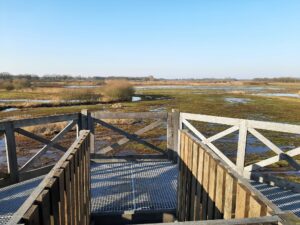 Een smalle loopbrug door de rietkragen, en vanaf de mooie nieuwe uitkijktoren is hier een mooie uitbreiding voor het kijkplezier gekomen. Vele eendensoorten, wat meeuwensoorten, grote zilverreigers en zelfs een zeearend zijn er (hopelijk) te zien. Vooral de weidevogels moeten hier hun rust vinden.
