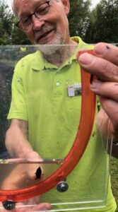 Er werd een behoorlijke variatie aan waterdiertjes gevonden: kokerjuffers, Amerikaanse hondsvissen, poelkikkers, kleine watersalamanders, allerlei larven van libellen en waterjuffers, watervlooien, een variatie aan watertorren en nog veel meer. De goudvissen in een andere vijver mochten gevoerd worden en de kinderen kregen na het scheppen limonade en een echt “wateronderzoekersdiploma”.