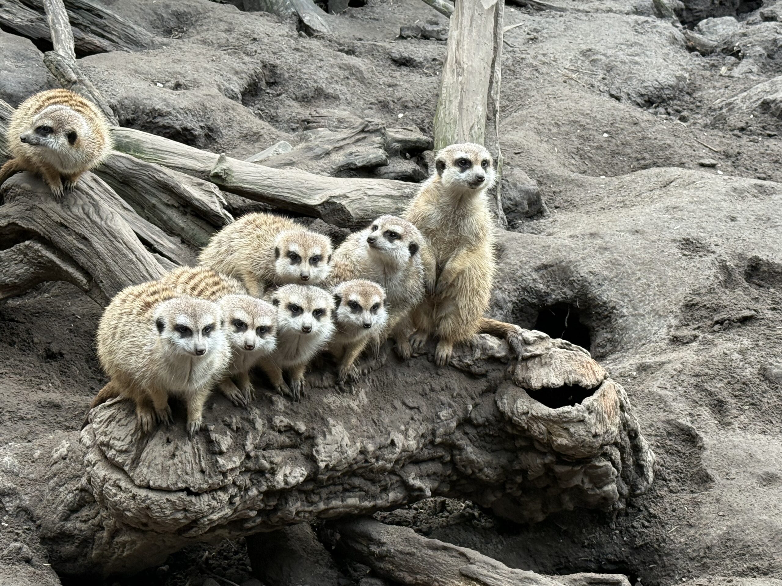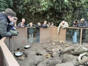 Na een welverdiende drinkpauze, trokken de kinderen er op uit naar de buitenverblijven om naar de aapjes, de katachtigen, leuke stokstaartjes en langoorkonijnen te gaan kijken.
