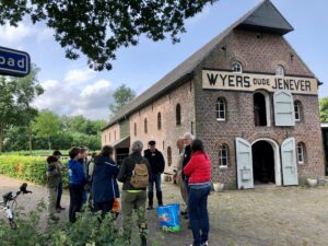Alles bij elkaar duurde dit alles natuurlijk langer dan gepland en hielden we niet veel tijd over voor een korte wandeling stroomopwaarts. Een eindje voorbij de plek waar lang geleden Huize Ten Bergh stond, moesten we al weer omkeren om op tijd weer terug bij de brandweerkazerne te zijn.