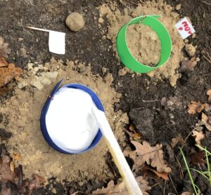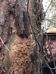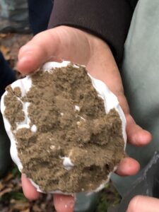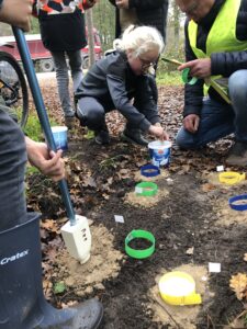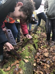 Op vermolmde bomen, op bladeren, op de grond, in en op de stam van een boom vonden ze pissebedden, sporen van schorskevers en mieren, knikkergallen, veegsporen van een ree, een smidse van een boomklever, hazenkeutels, molshopen en muizengaatjes. Zo konden we de kinderen veel natuurweetjes vertellen en laten zien. En zelf wisten ze al veel over de mol te vertellen. Er was een discussie of de mol nou 5 of 6 tenen had aan iedere graafpootje!