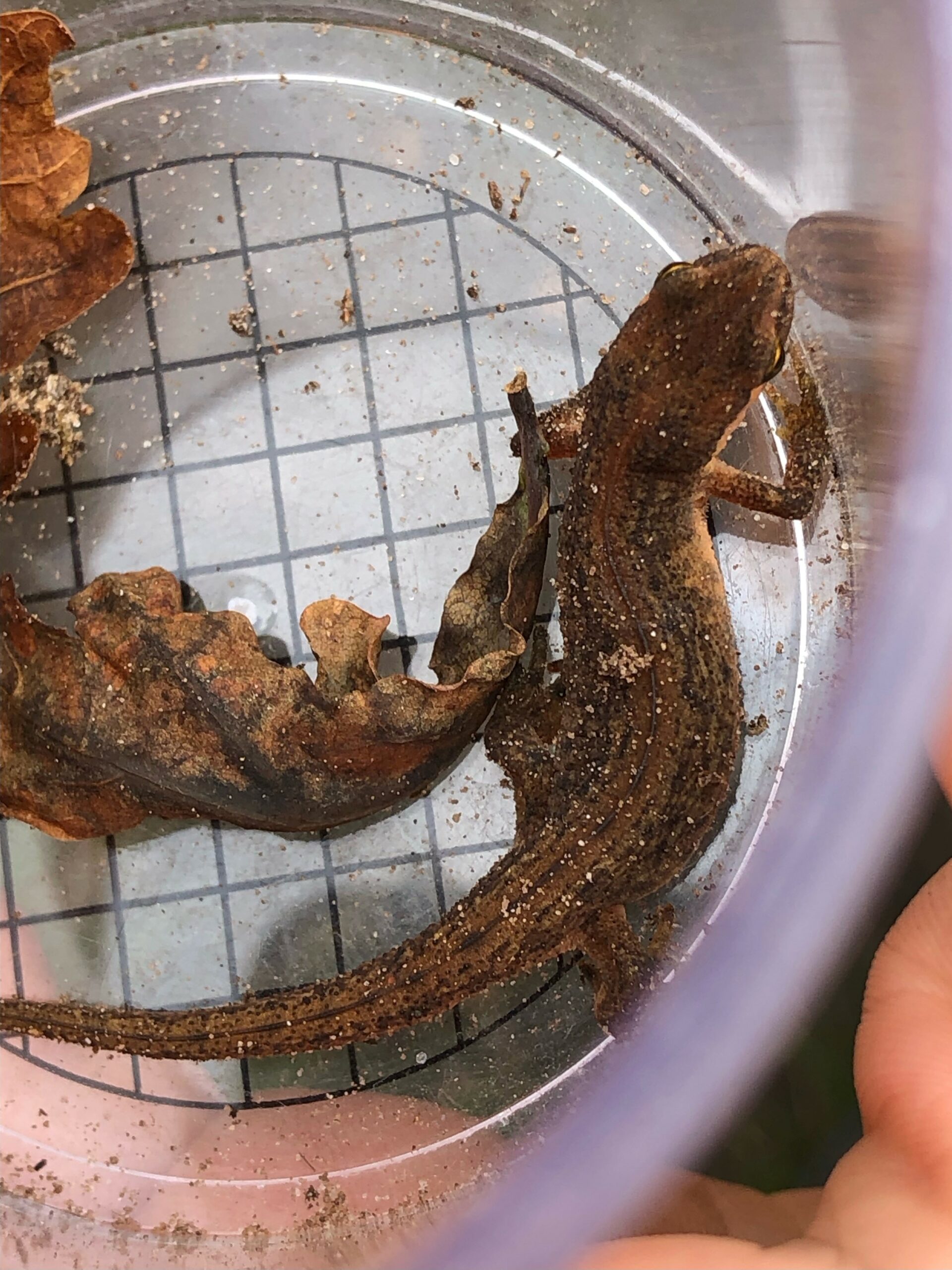 Een hagedis in het loeppotje voelde zich zo in het nauw gedreven,