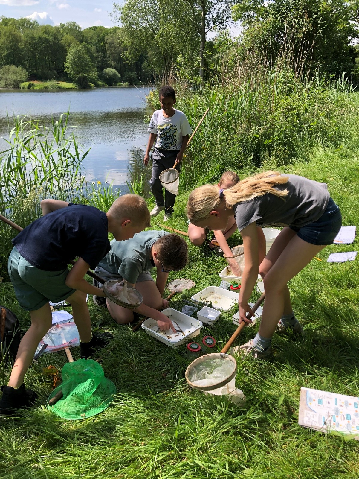 - Elke groep werkt in 90 minuten een parcours af met vier posten. Thema: In en om het water.