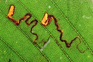 Wie veroorzaakt die vraat of vergroeiingen aan – of die gangen in een blad?