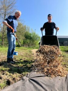 Eindelijk is de grond ver genoeg opgedroogd om door te gaan met de aanleg van de natuurtuin.